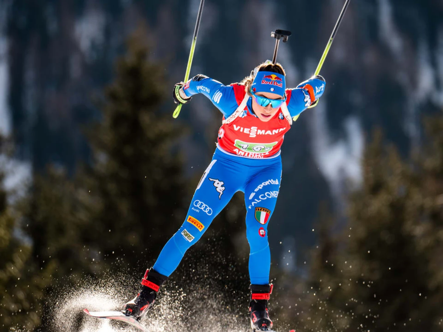 Она неловко чувствовала себя на лыжах в спринте в Антхольце, но затем взлетела до небес Южного Тироля и выиграла гонку преследования, индивидуальную гонку и заняла второе место в масс-старте. Вирер набрала 210 очков в Антхольце, или 52,5 за соревнование (по сравнению с 43,4 очками за выступление в 1-м триместре и 34,2 – во 2-м). Превзошла ее только невероятная Марте Олсбю-Ройселанн, которая набрала 216 очков, или по 54 очка за выступление в спринте и масс-старте, где она одержала победу, в гонке преследования, которая принесла ей третье место, и в индивидуальной гонке. Ханна Эберг поникла во время спринтерской гонки и заняла лишь 18-е место, но изо всех сил боролась за четвертые места в пасьюте и индивидуальной гонке и за бронзовую медаль в масс-старте. В Антхольце Эберг выиграла 157 очков, или 39,25 за соревнование (в 1-м триместре она набирала по 36,4 очка за гонку, а во 2-м – 45,6). Самое большое разочарование в Антхольце постигло Тириль Экхофф, обладательницу желтой майки после 2-го триместра: она заняла 59-е место в спринте, 20-е – в пасьюте, 15-е – в индивидуальной гонке и седьмое – в масс-старте. В Антхольце Экхофф выигрывала всего по 80 очков, или по 20,75 за соревнование (в 1-м триместре она набирала по 41 очку, а во 2-м – по 47,4). Дениз Херрман в Антольце набрала 152 очка, или по 38 за гонку. У нее все еще остаются (призрачные) шансы на титул в общем зачете.