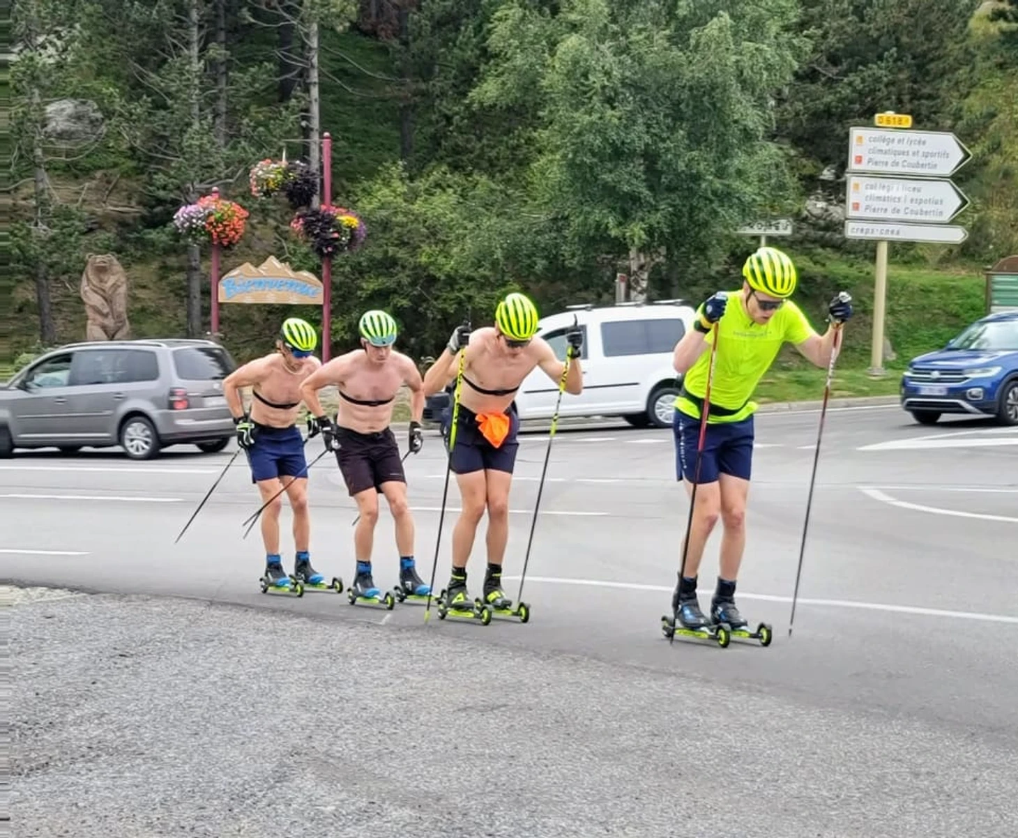 После 30 минут восхождения вереница спортсменов на лыжероллерах пронеслась через деревню Одейо с церковью XII века, отправляясь на 3-километровый заезд. После еще одного подъема они оказались прямо под Фон-Ремё, на роскошном мягком асфальте, проложенном специально к Тур-де-Франс – это почти ровный участок, идеальный для пары быстрых спринтов, «пробуждающих» быстро сокращающиеся мышцы. По главной улице Фон-Ромё, усаженной цветами, шведские гости попали на стрельбище более чем через полтора часа пути. Французская идиллия шведской команды: три недели на 1800 метрах Долгие подъемы, интенсивные тренировки в Фон-Ромё