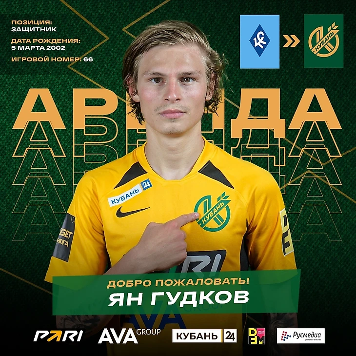 Ян ГУДКОВ (DL) "Кубань" Краснодар, 20 лет