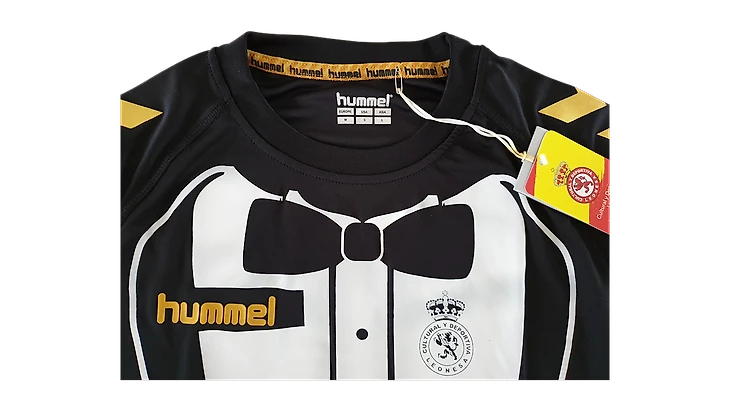 Необычный комплект выпустила компания Hummel. Форму от датского производителя в свое время носили мадридский «Реал» (1985-1994), «Тоттенхэм» (1985-1991), «Астон Вилла» (1987–90, 2004–07). Сейчас компания одевает сборную Дании, «Рейнджерс», «Мидлсбро», «Брагу», «Осасуну» и ряд других клубов среднего уровня.