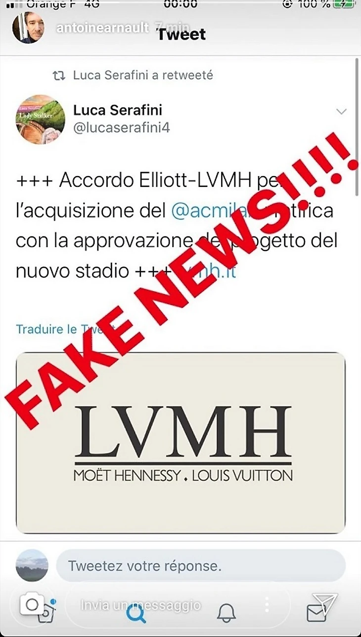 Серафини плотно общается с людьми из «Милана». Он первым написал о продаже клуба Берлускони в 2018-м и первым сообщил об интересе Арно к покупке «Милана». Другой инсайдер, Луи Жирарди, тоже говорит, что стороны уже договорились. Он считает, что Арно-младший опроверг новость из-за ее влияния на фондовый рынок и акции клуба.