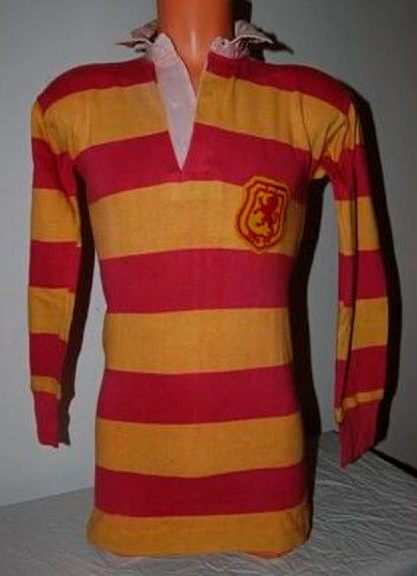 В том же году Примроуз организовал сборной Шотландии дополнительный комплект формы – конечно, с любимыми цветами. Шотландцам сделали вариант с поперечными широкими полосками розового и желтого цветов.