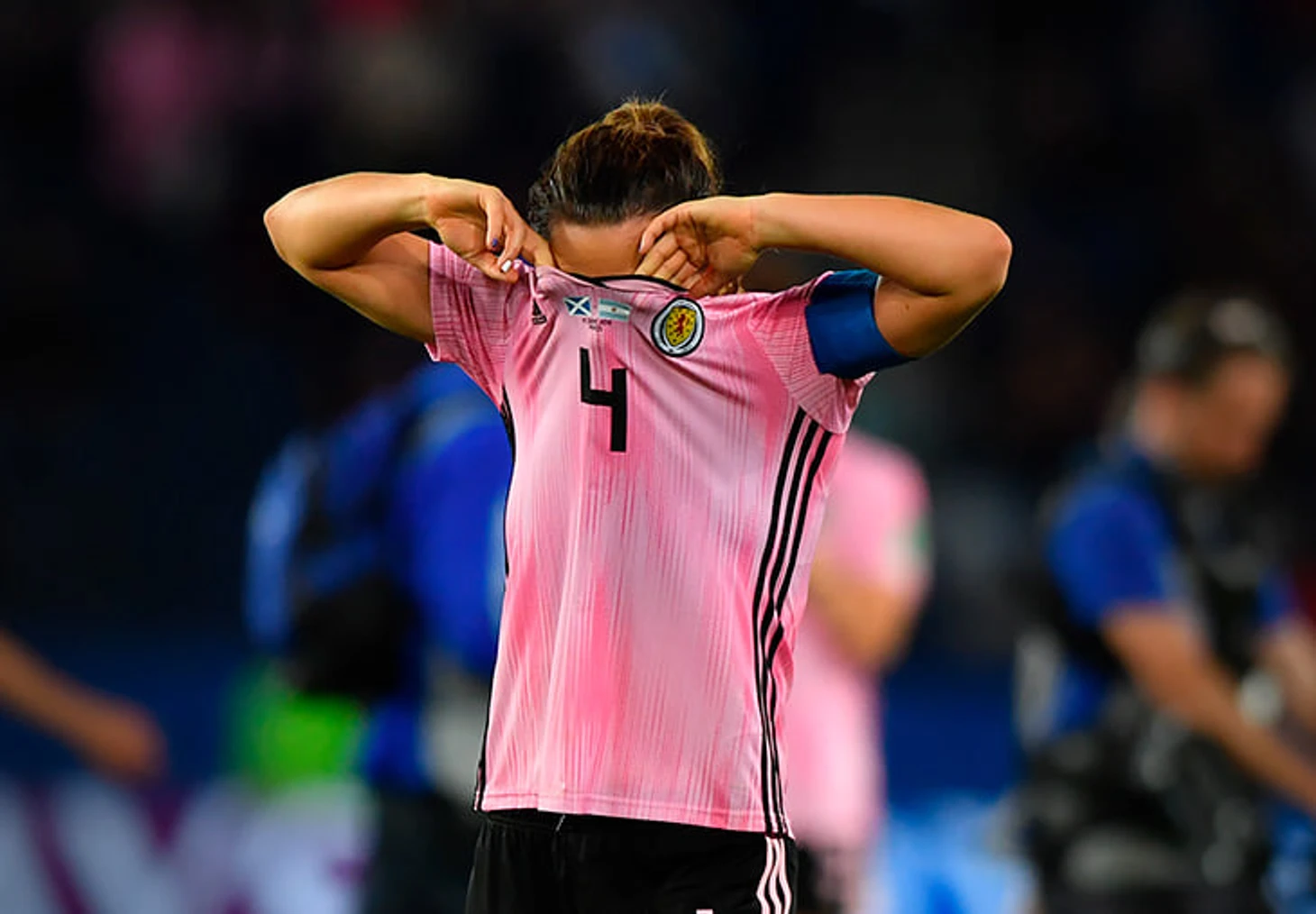 В лососевом теперь гоняет женская сборная Шотландии. Еще в старой форме они с первого места квалифицировались на ЧМ-2019, но на турнире обновленная экипировка не помогла. Сборная заняла последнее место в группе.