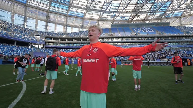 Автобус подъезжает к стадио и кружит вокруг – ищет въезд внутрь. Вся команда прильнула к окнам: «Мы по кругу ездим, в эти дырочки заглядываем, уже сердце просто выскакивает, чувак».