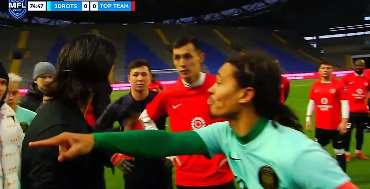 Пока в российском медиафутболе межсезонье и тишина, в Казахстане бушует местная Медиалига – 1XBET Media Football League. В последнем туре группового этапа сошлись одна из главных команд России 2Drots и Top Team из Кыргызстана. Казалось, что «дроты» буднично победят, но в итоге мы увидели самый безумный матч турнира – с кучей удалений, уводом команды с поля и техническим поражением.