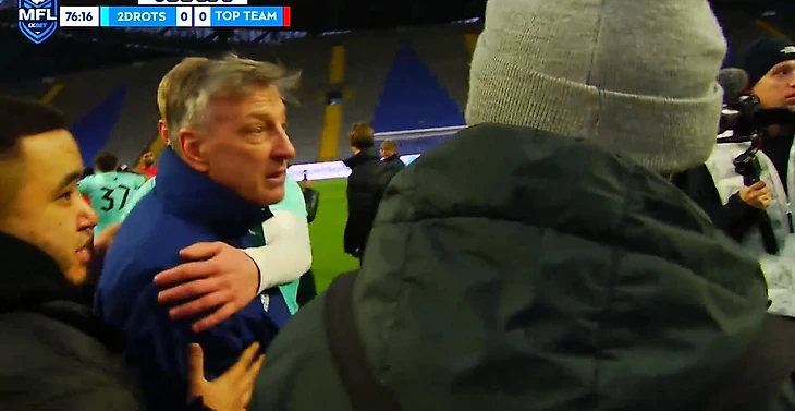 Примерно через 30 минут после финального свистка появилось видео из подтрибунки с представителями обеих команд: они извинились перед друг другом и пожали руки.