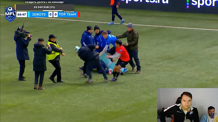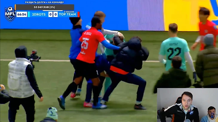 Во втором тайме началась массовая драка. Игроку 2Drots прилетело в голову двумя руками