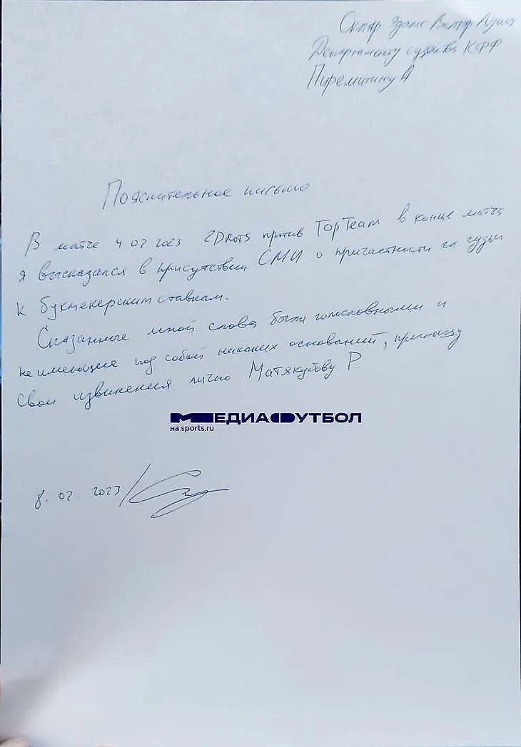 Шум вокруг Матякубова рос так сильно, что на следующий день после матча реф опубликовал открытое письмо. Полный текст здесь, ниже – главный моменты: