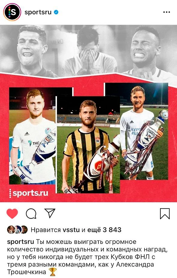 Ну а после Кубка-2020 я попал в основной инстаграм Sports.ru: там, где плачущие Месси, Криштиану и Неймар.