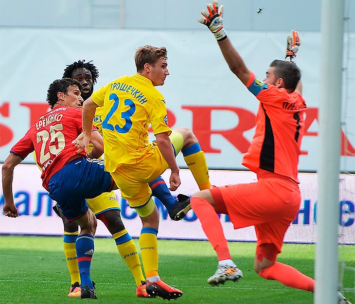 – Выходить-то даже прикольно, вот как с ЦСКА. Кайфовал на разминке, в тоннеле, где стоял рядом с Игнашевичем (на которого ходил в Лиге чемпионов – видел его гол «Боруссии»). На поле, где играл в паре с Торбинским (плакат с Димой висел на стене). Все шло неплохо, пока не привезли себе пенальти, Божовича не удалили за споры, а нам за десять минут не накидали четыре.