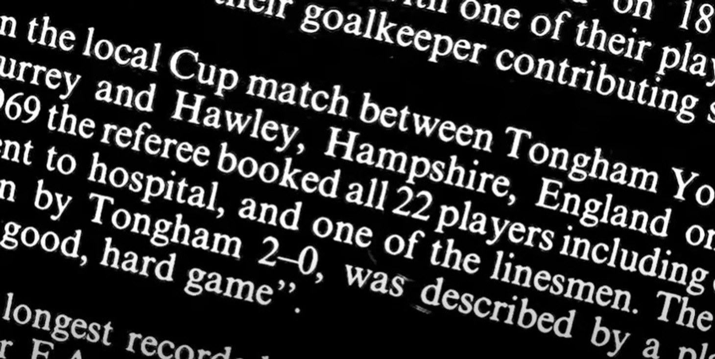 3 ноября 1969-го года тут – как утверждает Книга рекордов Гиннеса-2003 и ее жаркий поклонник Бернард из Индонезии – состоялся матч местного кубка под эгидой федерации Олдершота. Молодежь «Тонэма» обыграла резервный состав команды «Хоули» со счетом 2:0. Арбитр показал желтые карточки всем участникам матча и своему коллеге – лайнсмену. Ровно 23 штуки.