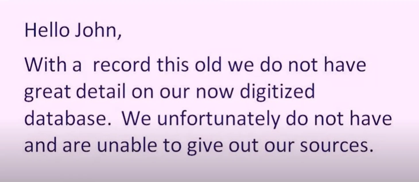 Ответ Джону из Книги Рекордов Гиннеса: «По таким древним записям в нашей цифровой базе просто нет данных необходимой вам детализации. К сожалению, ничем не можем вам помочь».