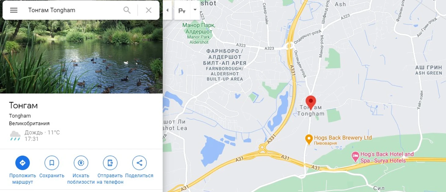 Wiki в качестве иллюстрации Тонэма (Tongham) дает заросший камышами пруд и пару облезлых уток. Еще тут есть клуб по крикету, симпатичная церквушка Святого Павла и шахты по производству патоки – Treacle Mines. Для тех, кто привык, что патока – это сладкая медообразная слизь и к тому, что добывается она вовсе не шахтно-карьерным способом, сразу уточняю – имеем дело с пролетарским английском юмором 19-го века.