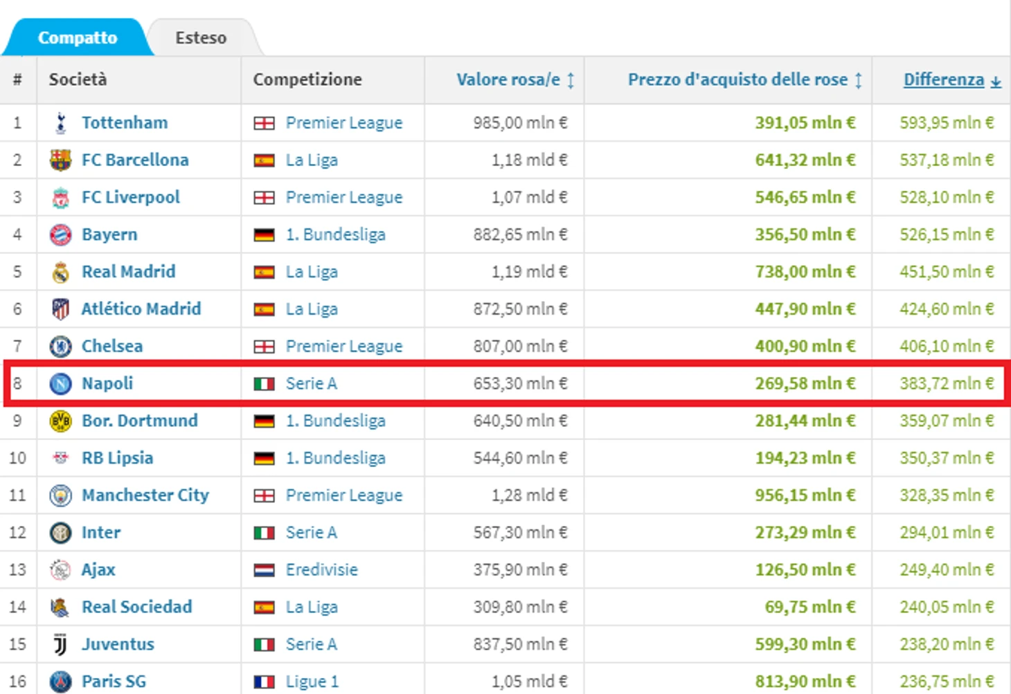 «Наполи» – лидирует по этому показателю в Италии и занимает 8-е место в Европе. Кто там у нас сумасшедший?