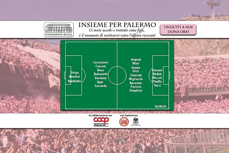 Под кампанией «Insieme per Palermo» подписалось 25 человек, включая 24 бывших футболистов клуба и Франческо Гвидолина, - тренера, вернувшего «орлов» в элиту спустя 31 год отсутствия в ней. Абсолютное большинство игроков в списке ковали славу палермитанцев во второй половине 00-х - начале 10-х годов. Множество фигур являются по-настоящему знаковыми для клуба: Сиригу, Дзаккардо, Кьер, Дармиан, Бальцаретти, Кассани, Ливерани, Иличич, Ночерино, Пасторе, Симплисио, Амаури и рекордсмен по количеству матчей в составе «розанеро» в рамках Серии А и лучший бомбардир команды всех времён Фабрицио Микколи.