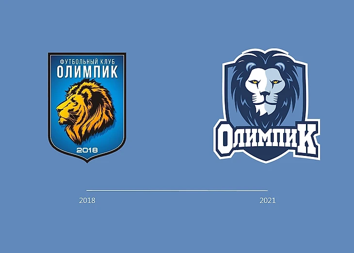 В новой эмблеме главный элемент – лев был перерисован в анфас в золотом цвете. Контур щита стал более плавным, а название «Олимпик» стало интересней и выразительней.
