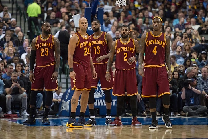 Следующая фраза про состав Кливленда. Без упоминания Ирвинга. Над тестом фото пятерки с Ирвингом.