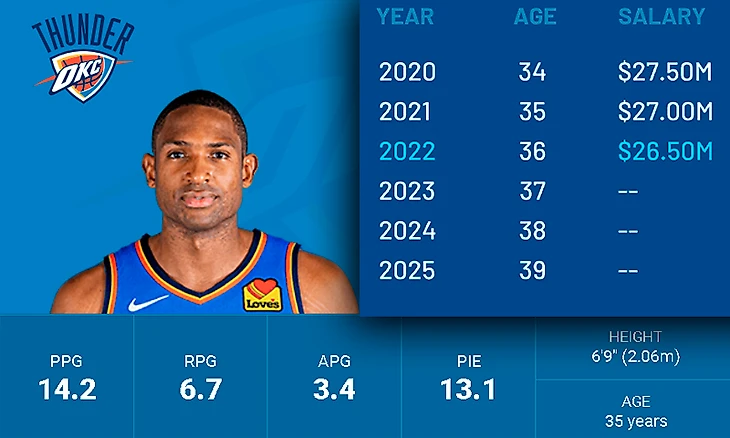 Оклахома развивает молодежь, Эл вряд ли ей нужен. Они могут отчислить Хорфорда даже без уступок с его стороны. Последний год гарантирован лишь на 14.5 млн. В идеальном мире, где всё это происходит, его опыт, защита и наличие 3-х очкового очень пригодятся Леброну.