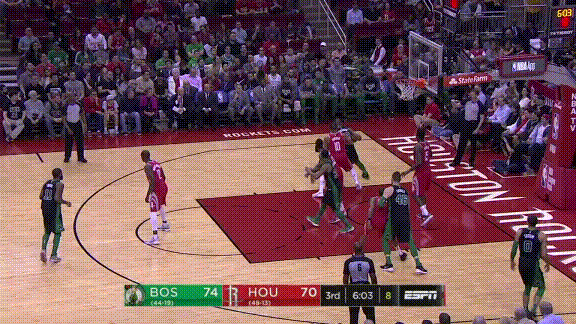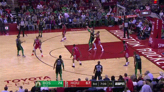 «Хьюстон» отправляет Гордона на быстрый дабл-тим против Хорфорда. Это должно было спровоцировать пас на оставшегося без опеки Маркуса Смарта, но он, как и Бэйнс, просто создавал массовку в краске. «Рокетс» рискнули, но оказались победителями.