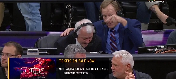 Они подкалывают друг друга так же часто, как и саму команду «Кингс». Рейнолдсу 74, и когда он читает различные промо, ему приходится чуть ли не липнуть глазами к монитору, чтобы увидеть текст. Они решили посмеяться над этим обстоятельством, показав в телетрансляции, как Рейнолдс, щурясь, смотрит в экран, в то время как Нэйпир оценивает его работу: