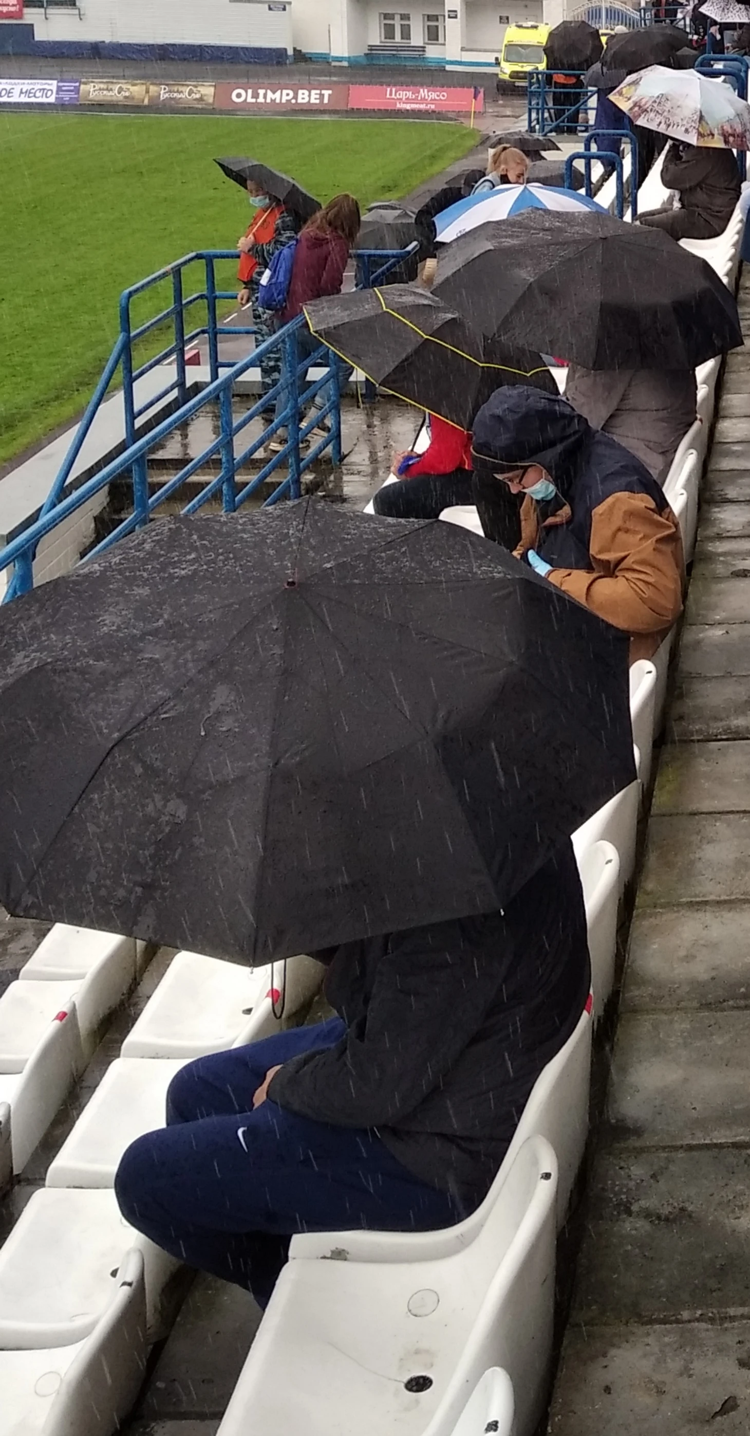 В итоге большая часть болельщиков всё-же успела занять свои места до стартового свистка арбитра. Зрители на трибунах, в большинстве своём пребывали в приподнятом настроении, даже несмотря на периодически возобновлявшийся ливень.