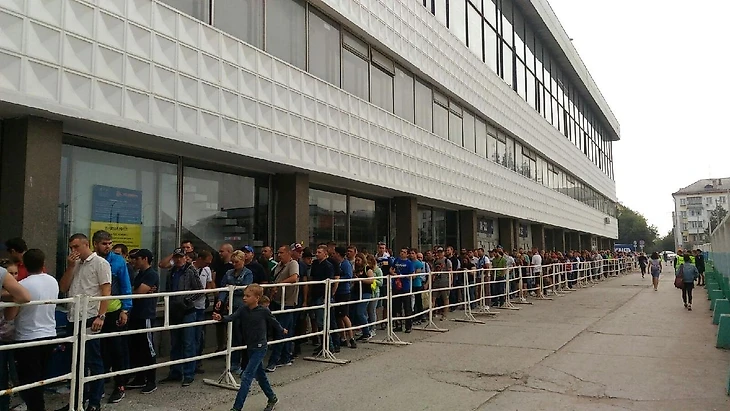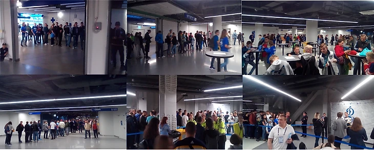 Очередь заполнила всю площадь перед стадионом, а также растянулась вдоль его боковой стороны. Примерно такое положение дел оставалось и на 14:30, в которые двери захлопнулись перед лицами несчастливых. Ругающиеся на то, что сессия якобы закончилась за полчаса, забывают, что очередь была и внутри здания ЛДС.