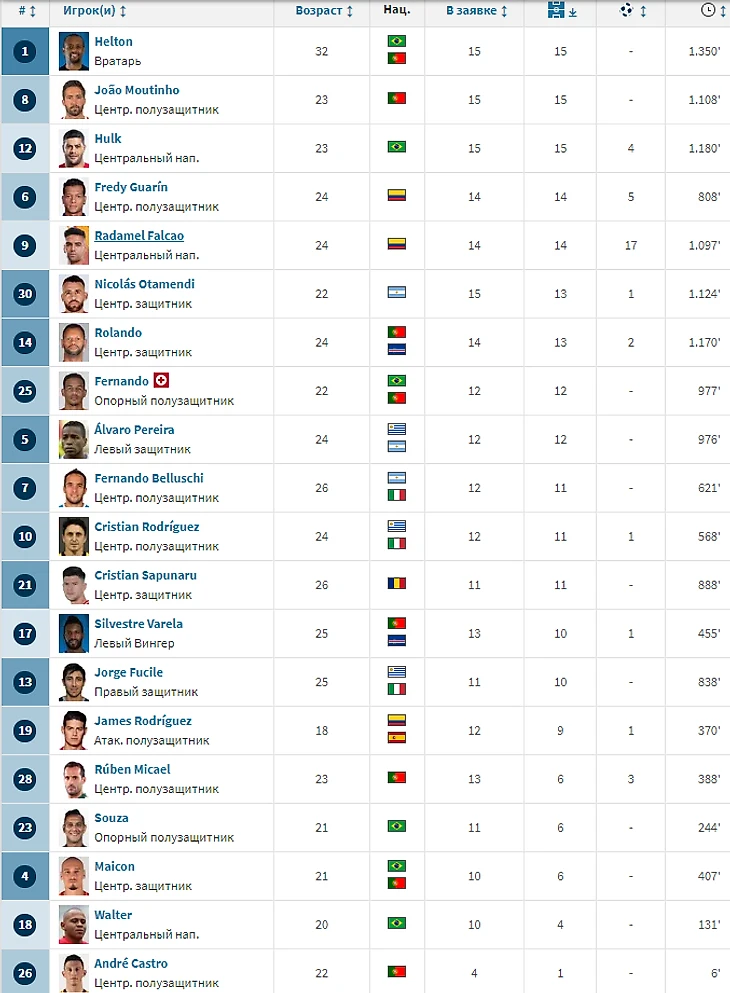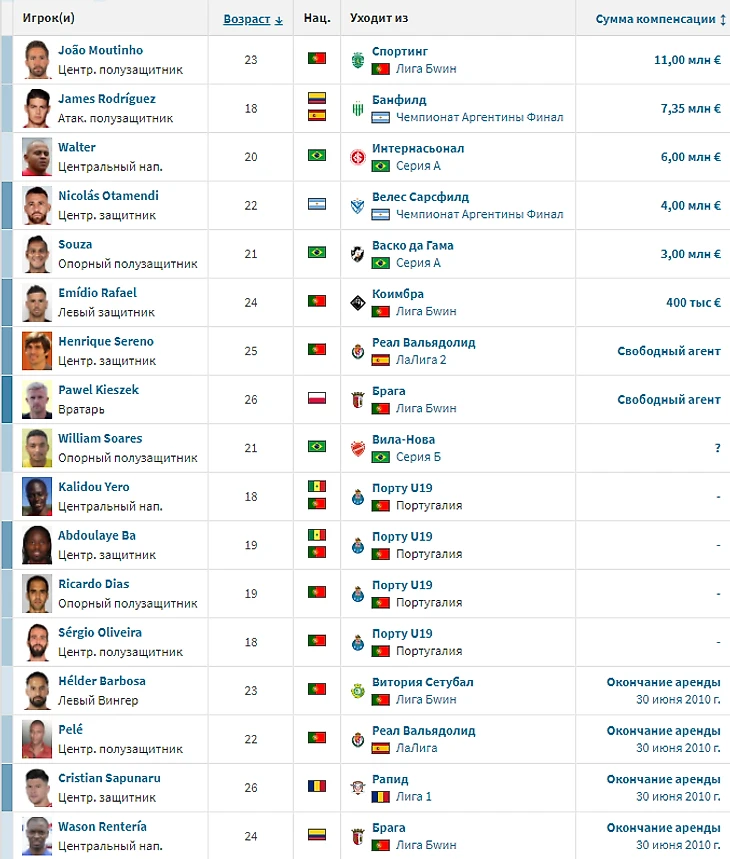 Хамес Родригес - молодое дарование «Порту», только что выписанное из Чемпионата Аргентины за хорошую сумму. На счету молодого колумбийца один гол и пять результативных передач в девяти играх. В дальнейшем он станет лидером «драконов», за 45.00 миллионов перейдёт в «Монако», а спустя ещё год в «Реал» - за 75.00. Хамес станет одним из лучших игроков Мундиаля 2014 года, проведёт один очень сильный сезон в Испании, а затем начнётся спад. Изредка у Родригеса ещё будут всплески, неплохая аренда в «Баварию», бодрое начало выступлений за английский «Эвертон». Сейчас колумбийцу тридцать и он с осени прошлого года играет в Чемпионате Катара.