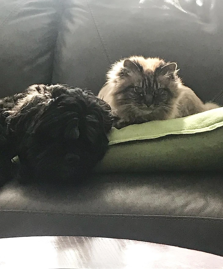Не знаю как вам, а мне она кажется ужасно похожей на своего хозяина. Они даже лежат одинаково. И это выглядит ужасно мило. Такая семейная идиллия.