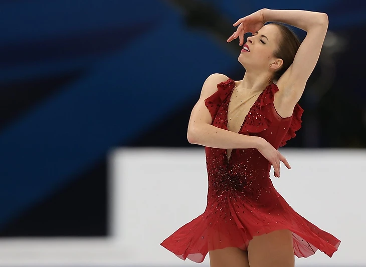 На олимпиаде в Корее Каролина выступила в платье насыщенного красного цвета пошитого для нее модным домом Роберта Кавалли.