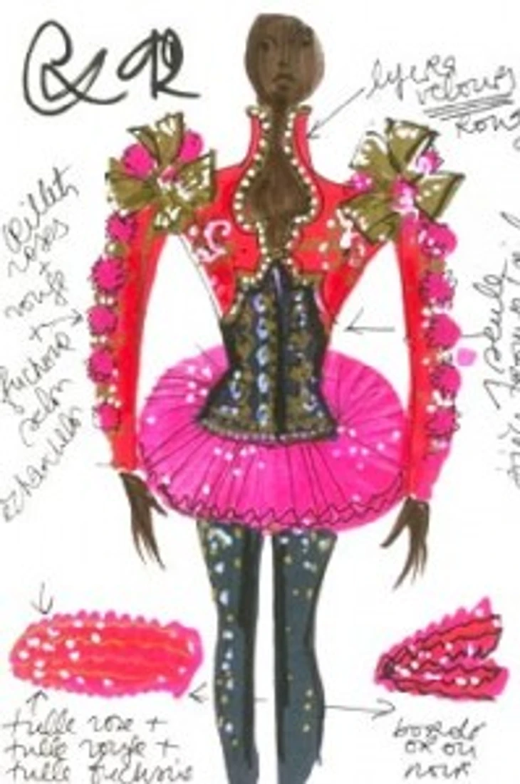 А вот эскиз платья для французской фигуристки от того же дизайнера. К сожалению нашла фото я только в маленьком размере.