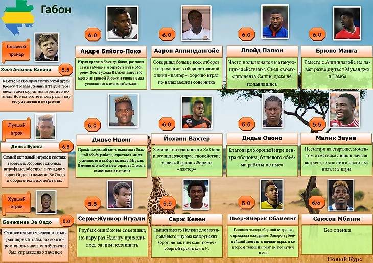 Предиспозиция перед матчем была проста. Камерунских «львов» вполне устраивало одно очко, которое, правда, далеко не гарантировало лидерство в группе, а вот Обамеянгу и Ко нужна была от финального матча группы лишь победа. В бой за ключевые 3 очка и первую викторию на турнире Хосе Антонио Камачо пустил практически тот же состав, что мы привыкли видеть от Габона на КАН. Все замены были напрямую связаны с травмами. Сломанный Жоан Обианг уступил место человеку из предпоследней команды чемпионата Мальты, Бенжамену Зе Ондо. На месте Мерлена Танджигора появился Серж-Жуниор Нгуали, в чьем паспорте еще значится фамилия Мартинссон, а в чьих жилах течет шведская кровь. Его визави – Уго Броос – выдал один из самых неожиданных стартовых составов за весь турнир. Наконец-то закончилась ссылка Николя Нкулу, на фланге появился Эдгар Салли, а Венсану Абубакару был предпочтен легионер из Словакии Роберт Ндип Тамбе.