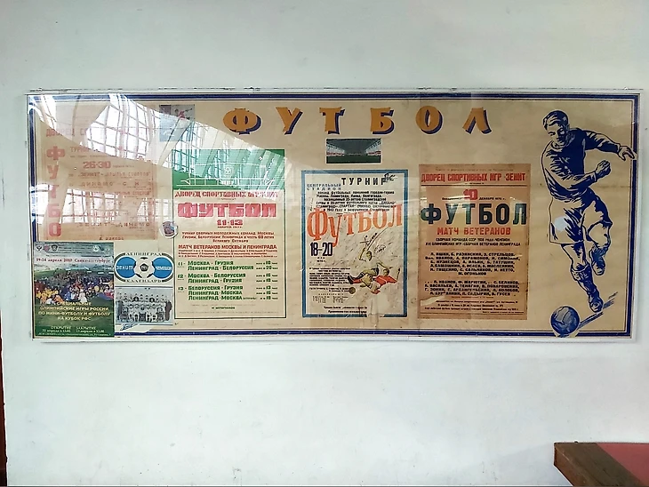 У входа замечаю довольно-таки большой стенд с афишами давно прошедших событий. На некоторых даже присутствовали автографы. Видимо, тех, кто в этих событиях принимал непосредственное участие. Заостряю внимание на одной из таких афиш. Из нее следует, что в декабре 1978 года сборная СССР – с Яшиным, Нетто и Стрельцовым, играла против сборной Ленинграда – с Бурчалкиным, Садыриным и Зониным. Это был матч ветеранов. Полез искать результат, но не нашел.