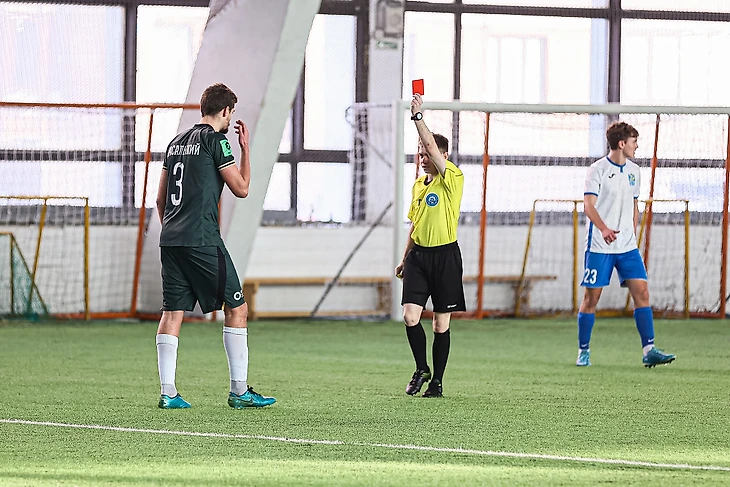 Едва же второй тайм стартовал, случилась довольно курьезная ситуация. Игрок «Пскова» грубо сыграл против игрока «Ядра», вытолкав того чуть ли не за пределы поля, что в очень компактном манеже чревато серьезной травмой. Свою вину игрок «Пскова» признал и в споры с арбитром вступать не стал. Зато вступил защитник «Ядра», требовавший для соперника то ли желтую, то ли прямую красную карточку. В результате чего он сам был удостоен желтой, которая стала для него второй в матче.