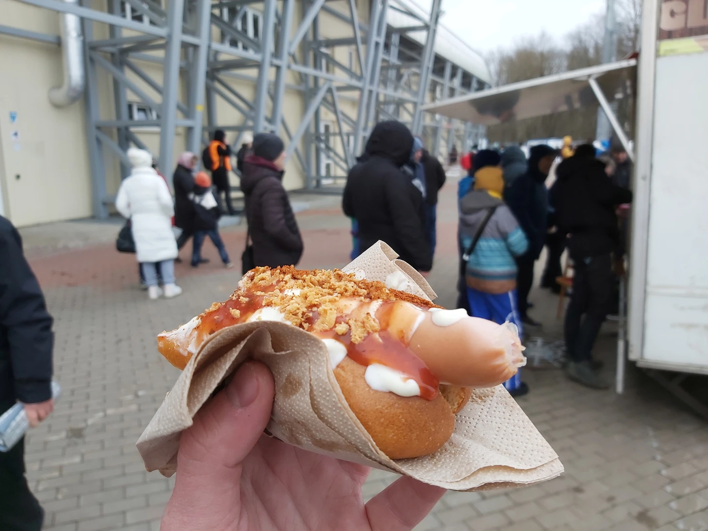 Я же пью чай и поедаю тот самый хот-дог (весьма острый), капая майонезом на куртку. Других развлечений на стадионе теперь нет.