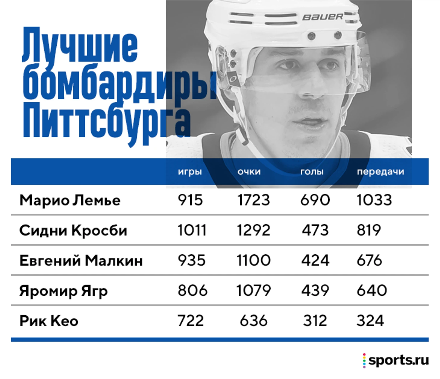 Впрочем, для «Питтсбурга» цифры Малкина тоже очень важны – он третий, кто набрал столько в свитере с «Пингвином».