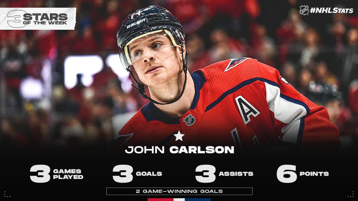 Первая звезда - Джон Карлсон, "Вашингтон" - 3 игры, 3+3, "+4"