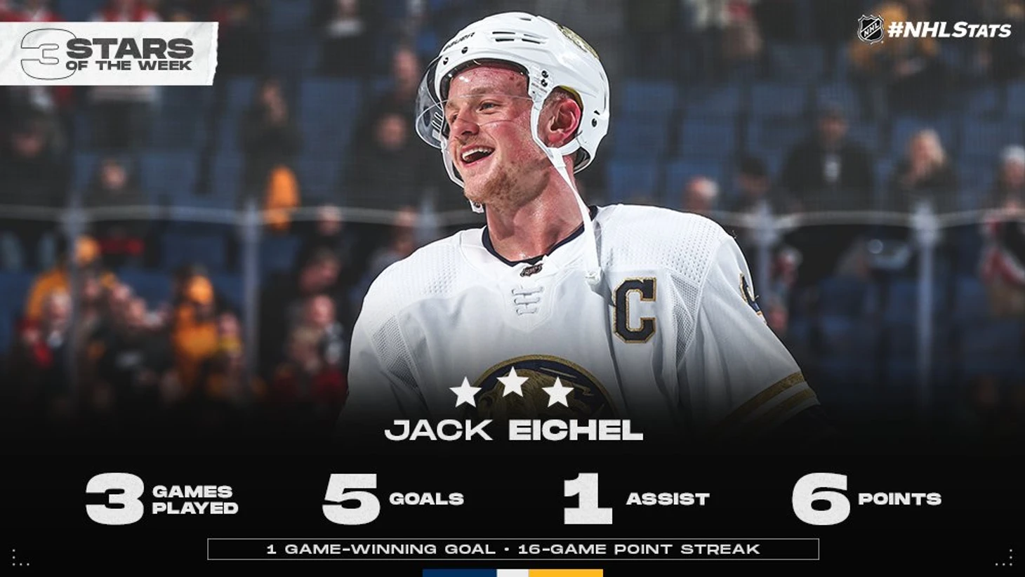 Третья звезда - Джек Айкел, "Баффало" - 3 игры, 5+1, "+4"
