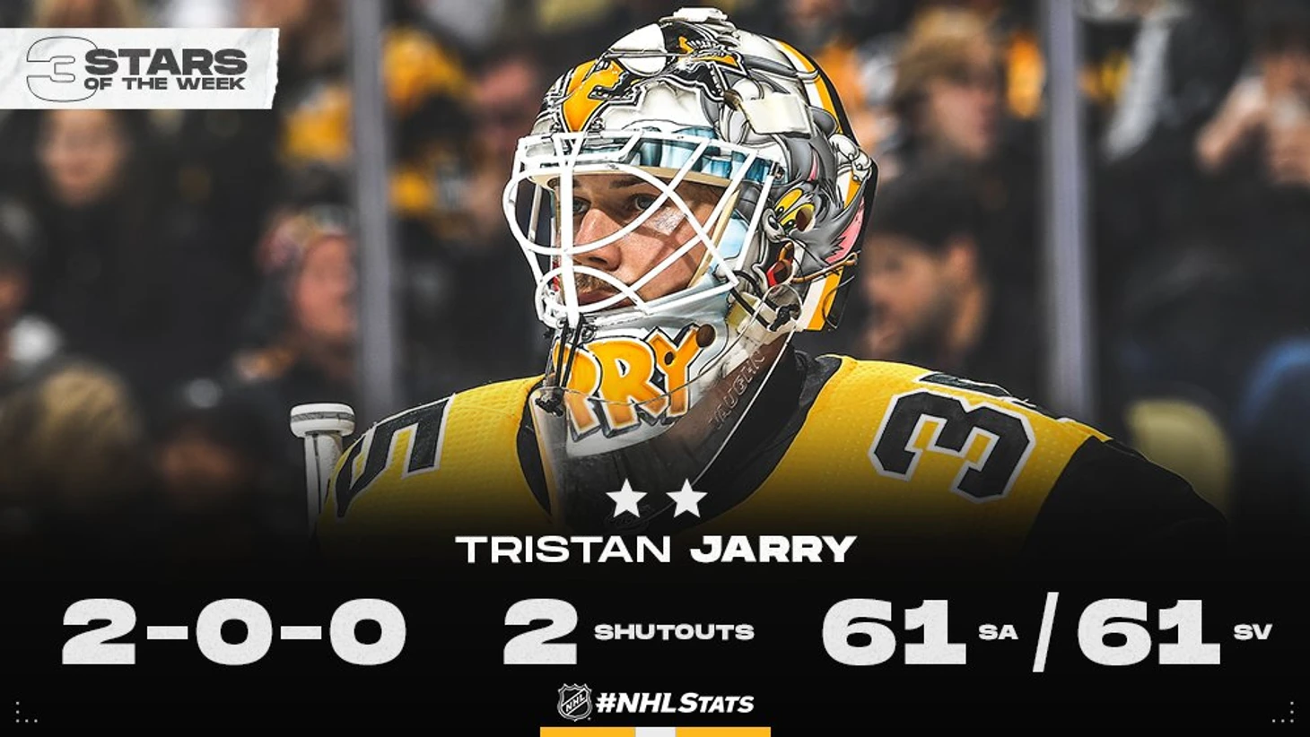 Вторая звезда - Тристан Джерри, "Питтсбург" - 2 игры, 2-0-0, 2 шатаута, 61 сэйв