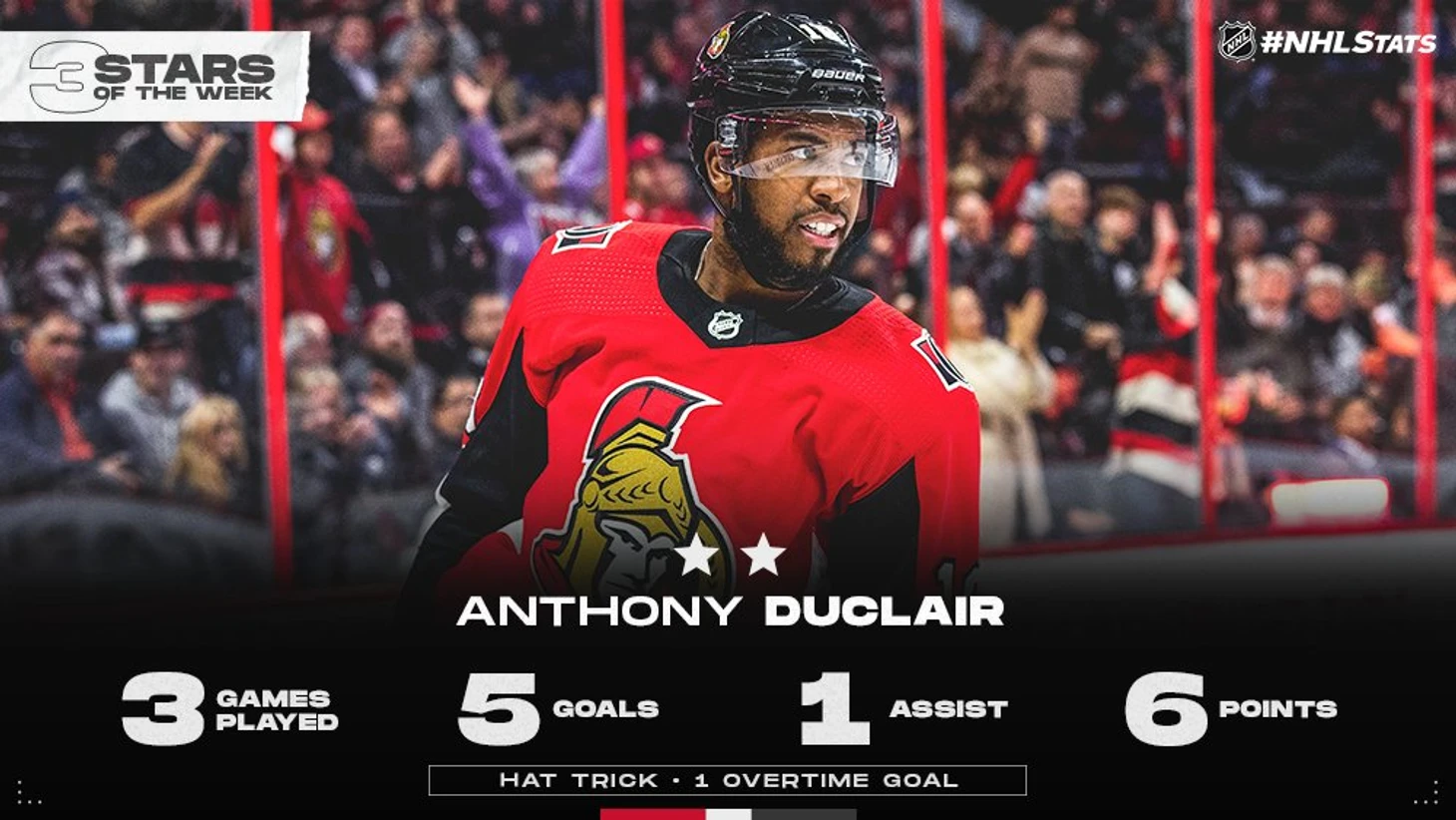 Две очень разные недели получились у "Оттавы": с 2 по 8 декабря "сенаторы" проиграли две встречи, но обыграли одного из лидеров Западной конференции - "Эдмонтон"; c 9 по 15 декабря - уже две победы, над "Бостоном" и "Коламбусом", но при этом проиграли одному из прямых конкурентов - "Монреалю". Героем второй недели стал Энтони Дюклер (о нем ниже), а для россиян неделя выдалась непростой. У Наместникова 1+3, Анисимов набрал 2+1, а Никита Зайцев отметился одной результативной передачей.