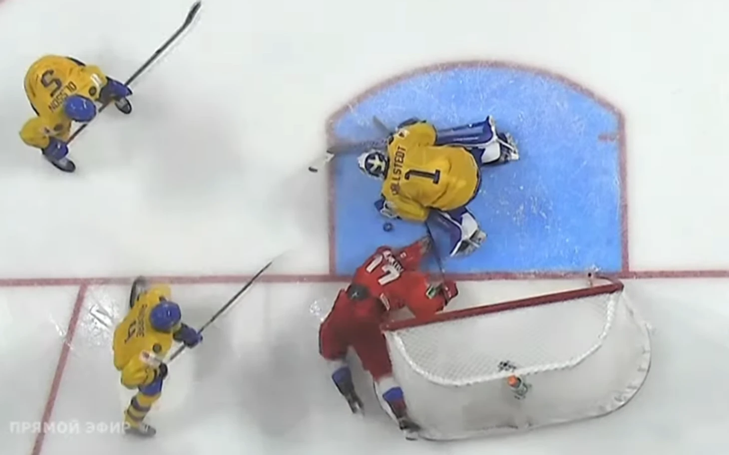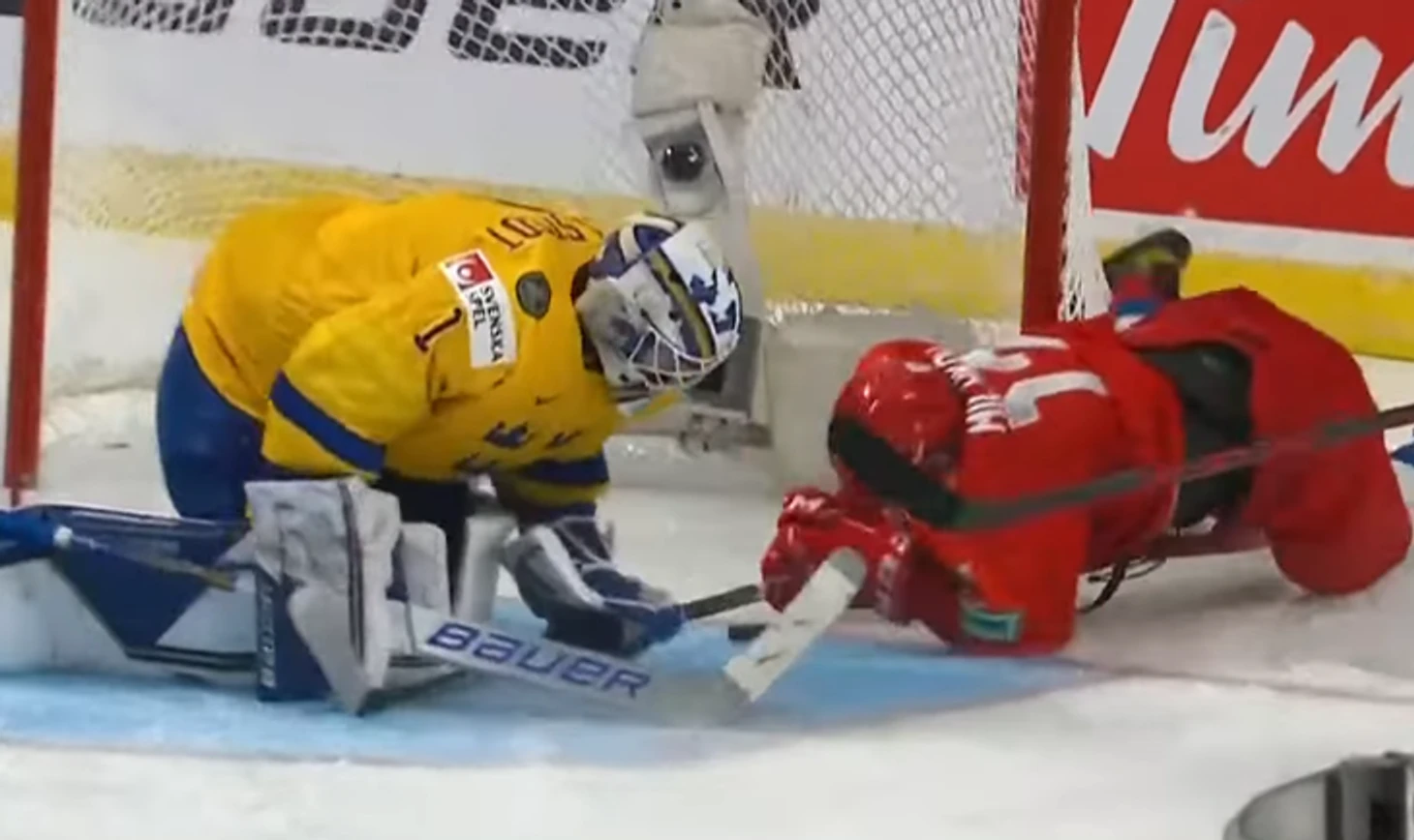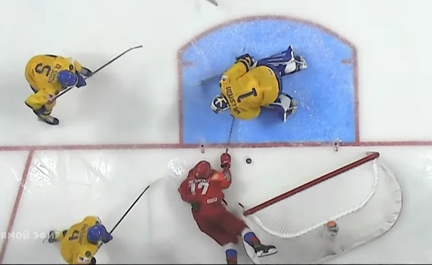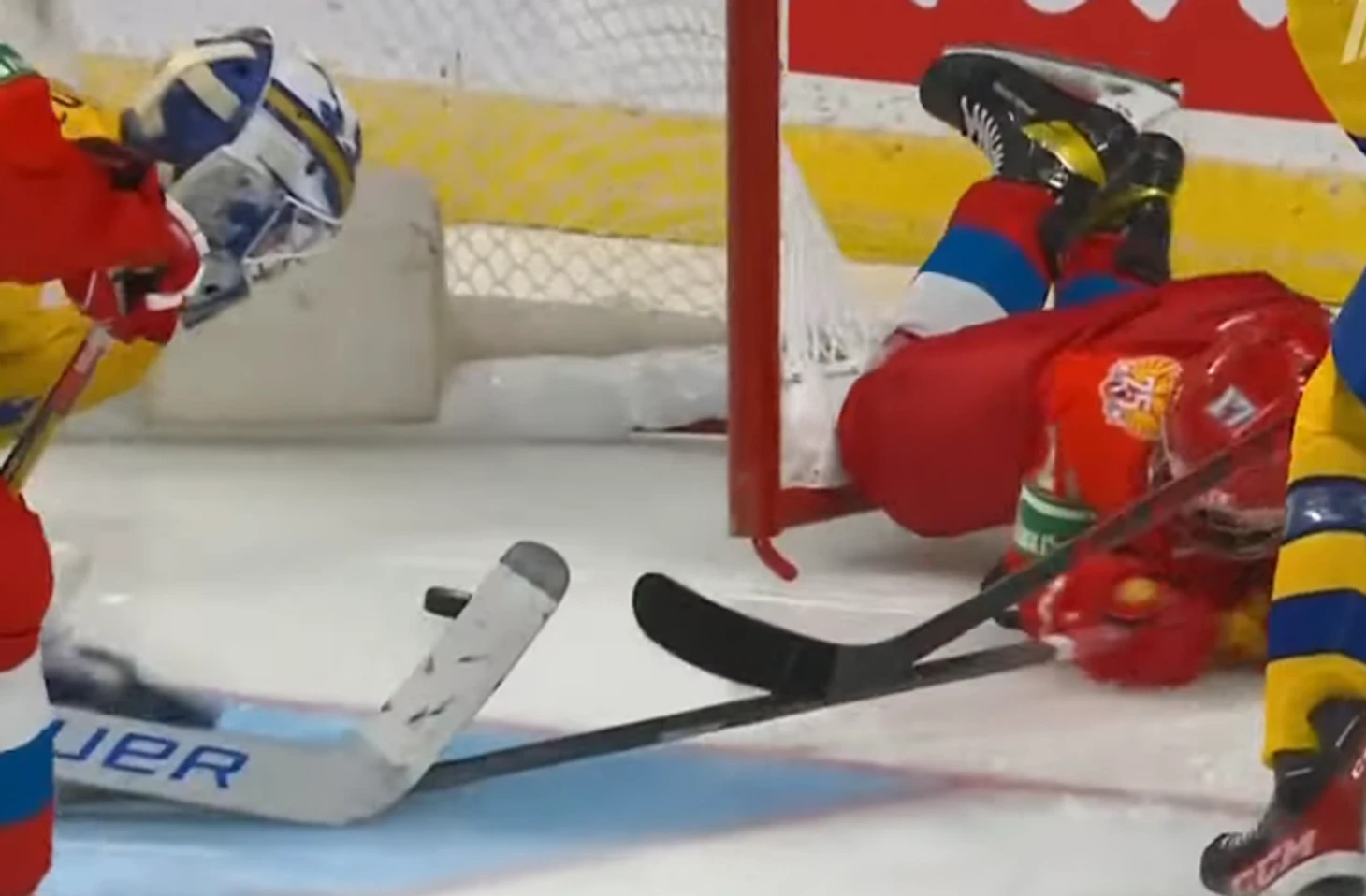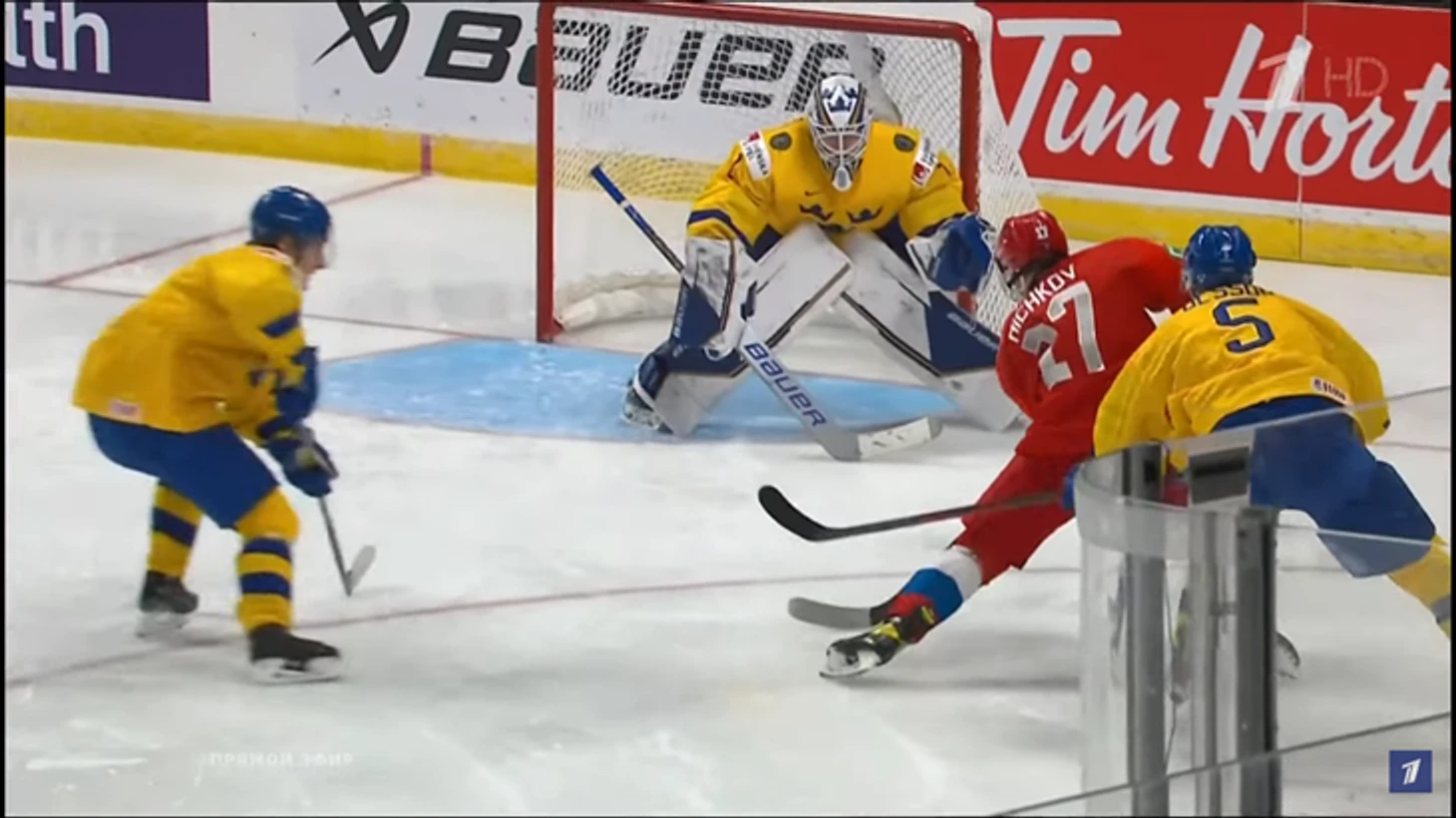 Сборная России проиграла первый матч МЧМ шведам, но был момент, когда наши оказались близки к тому, чтобы спастись. Главная звездочка сборной – Матвей Мичков – сделал дубль двумя необычными голами, первый из которых получился совсем уж удивительным.