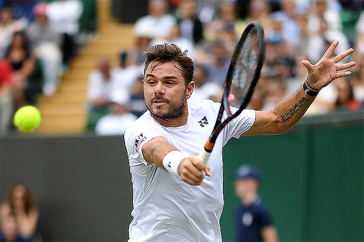 Циципас и Вавринка, бьющие слайс (Вавр может полу волли с лёта), но никак не то одноручный бекхенд.