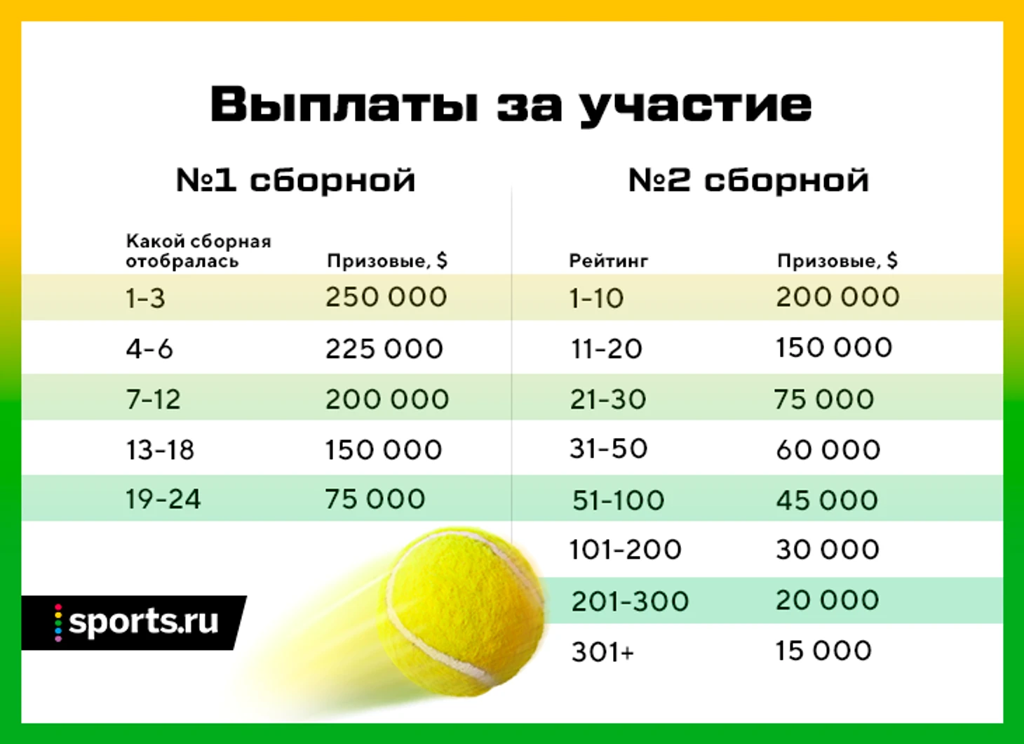 Для элиты это особенно привлекательно, потому что топы могут заработать очень много. Непобежденный первый номер сборной максимум может набрать 750 очков – больше, чем за финал на «Мастерсе» или полуфинал «Большого шлема». А всего на ATP Cup разыгрывают 5825 очков – тоже больше, чем на крупнейших индивидуальных турнирах.