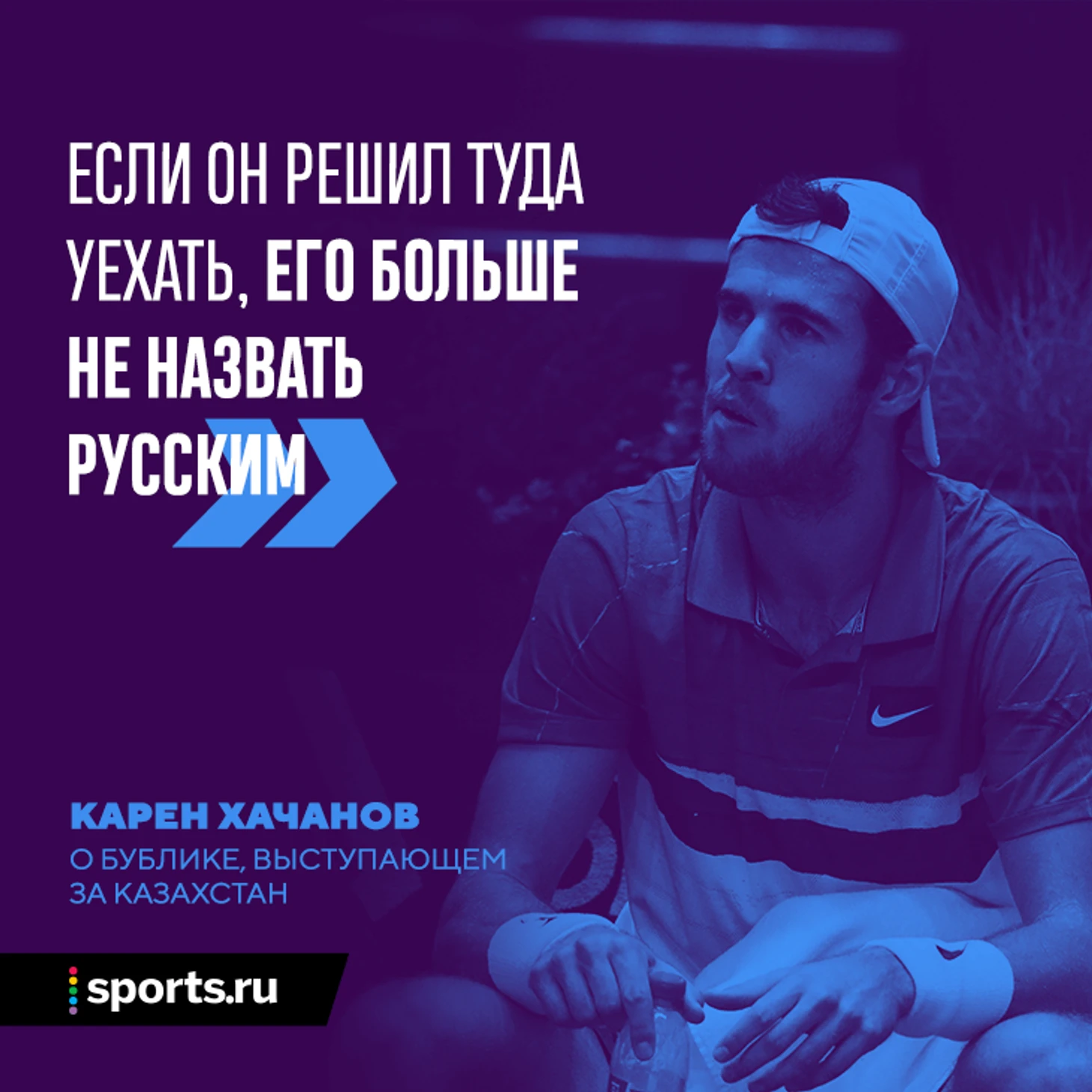 По тем же причинам от Хачанова в 2017-м досталось Александру Бублику: «Он не русский. Больше не русский. Он теперь играет за Казахстан, так что больше не российский теннисист. Это принципиальный момент. Если он решил туда уехать, его больше не назвать русским».