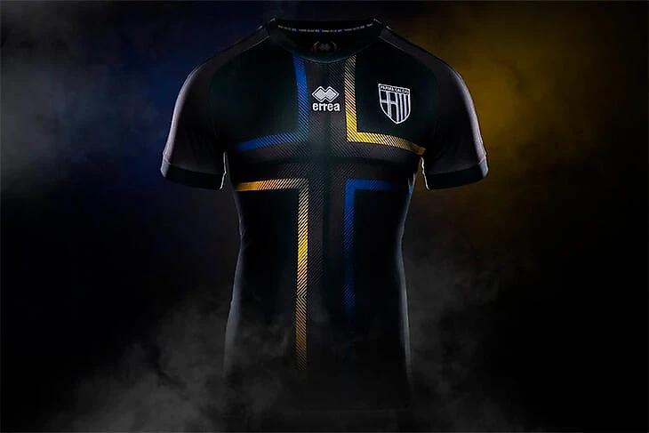 Графические решения форм «Пармы» всегда строились на геометрии эмблемы — креста и полосок. Посмотрите на домашний комплект 1974 года, тогда еще не было титульных спонсоров. Крест — очень мощный прием в художественной композиции. Но такое грубое использование выглядит монструозно.