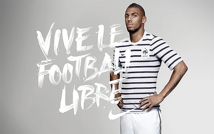 Первая форма Nike для французов, единственный раз, когда к футболу прикоснулся Карл Лагерфельд. Кажется, именно после этого я понял, что футбольная форма может быть красивой.