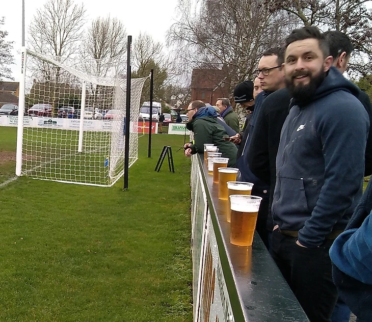 «Вестбери Юнайтед» (Д9) и пивной ряд за воротами, Уилтшир.