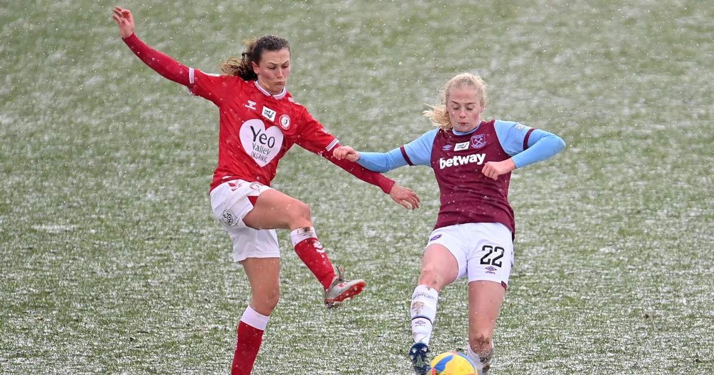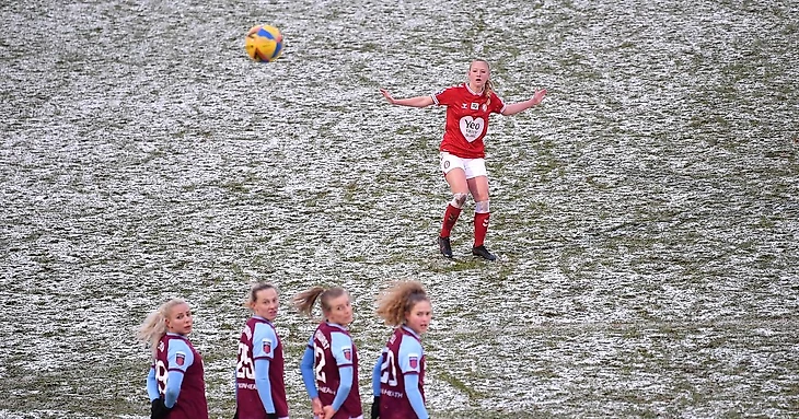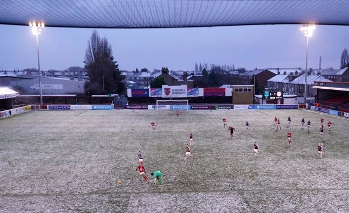 Стадионы нон-лиги заняты не только сильной, но и слабой прекрасной стороной футбола – женской Суперлигой, как обычно по воскресеньям. Вот в таких условиях на стадионе клуба «Дагенэм энд Редбридж» (Д5) играли «Вест Хэм» и «Бристоль Сити» (1-1).