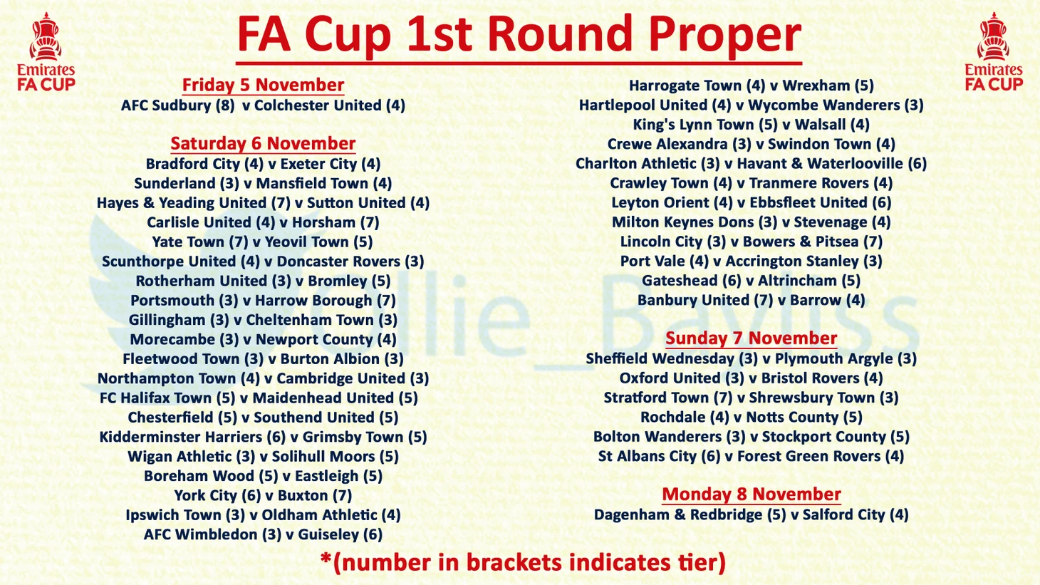 В первом раунде уже нет географически привязанной жеребьевки, но дерби двух граничащих друг с другом графств все-таки случилось. Причем и дерби двух городов – между Садбери и Колчестером 15 миль (24 километра).