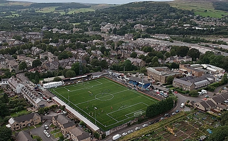 Да, ввиду рельефа местности «Силверлендс» считается самым высоко расположенным футбольным стадионом в Англии, как, понятное дело, и сам клуб. Правда в этом у «Бакстона» есть конкурент – «Бейкуп Боро» из графства Ланкашир и 10-го дивизиона тоже расположен на отметке близкой к 1000 футов над уровнем моря.