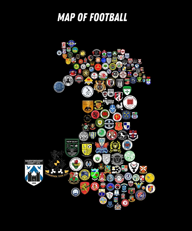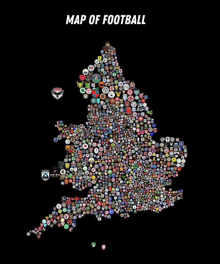 Карта Великобритании из футбольных эмблем — задействованы 1500 клубов!